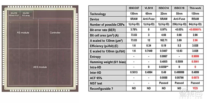 今年4月,清华微纳电子系钱鹤、吴华强教授团队在第66届国际固态电路会议(ISSCC 2019)上,报道了国际首个基于阻变存储器(RRAM)的物理不可克隆函数(PUF)芯片设计,已通过美国国家标准与技术研究院的随机测试。