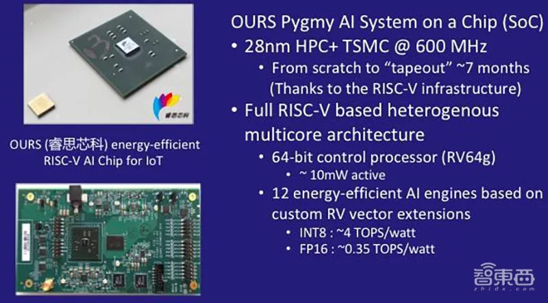 OURS在深圳落地中资RISC-V技术公司睿思芯科,已推出旗下首款基于RISC-V的64位可编程终端AI芯片Pygmy,对比Arm同级别芯片,可将能耗降低85%,面积减少80%,能应用于各种终端AI推理场景。