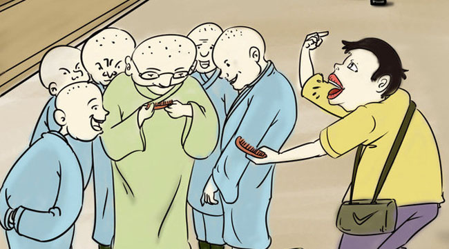 劝施主放下过去,从头再来,赠梳一把,取意从头。