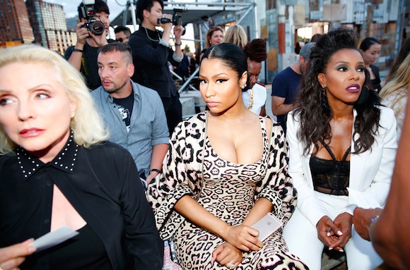 妮琪·米娜(Nicki Minaj)穿着一身豹纹装到场看秀,神似卡通人物兔子杰西卡(Jessica Rabbit)的真人版。朱莉娅·罗伯茨(Julia Roberts)则穿着一身黑色燕尾服套装到场,坐在后排的演艺圈人士有克里斯蒂娜·里奇(Christina Ricci)、科特妮·洛芙(Courtney Love)、黛布拉·哈里(Deborah Harry)、阿曼达·塞弗里德(Amanda Seyfried)、珍妮佛·哈德逊(Jennifer Hudson)和埃里卡·巴杜Erykah Badu,就连西班牙导演佩德罗·阿莫多瓦(Pedro Almodóvar)也专程从马德里赶来参加这场大秀。