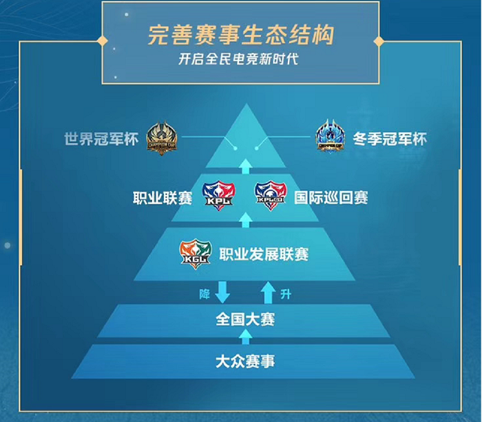 除了地域化升级外,KPL联盟还对赛事体系进行了升级,核心是重构了大众赛事体系。