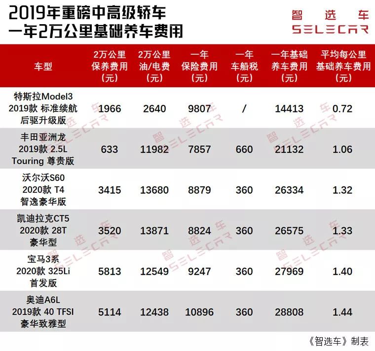 ①国产特斯拉Model3作为纯电动车型,在养车费用方面优势明显;