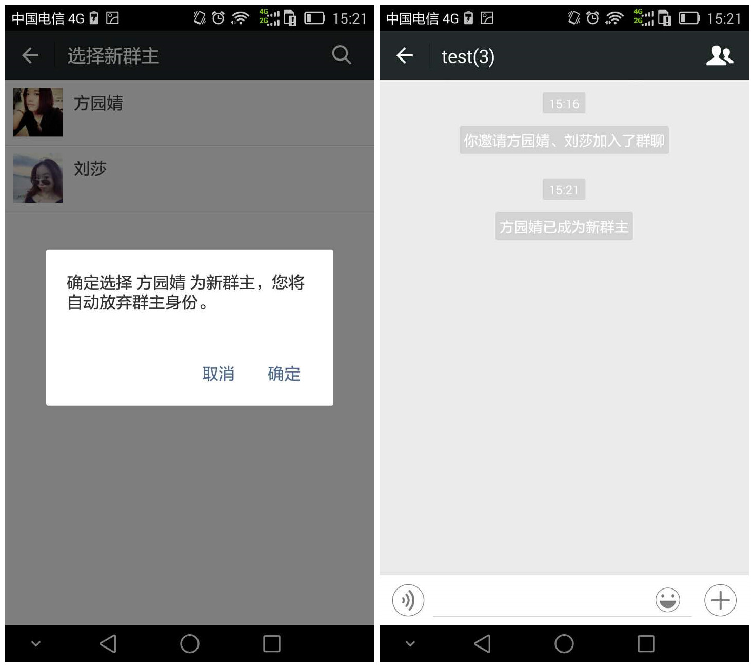 如果不想继续担任群主,群主可以选择转让功能,随后被挑选的成员就会成为群主。