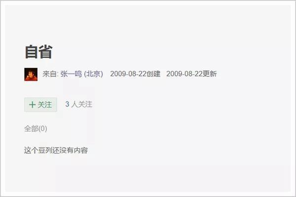 张一鸣在豆瓣上一直有着个命名为“自省”的豆列,虽然里面空空如也。