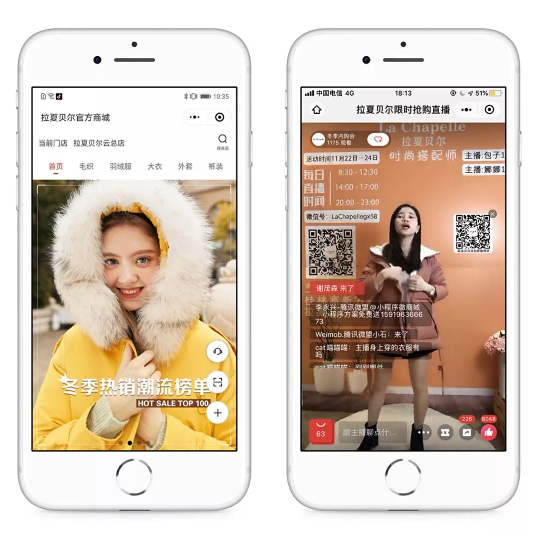 2019年9月,品牌主微信小程序可以内嵌腾讯直播H5 页面,既可以满足品牌主在小程序中开直播,也可以同时让其在直播间跳转回自己的小程序方便粉丝购买商品。