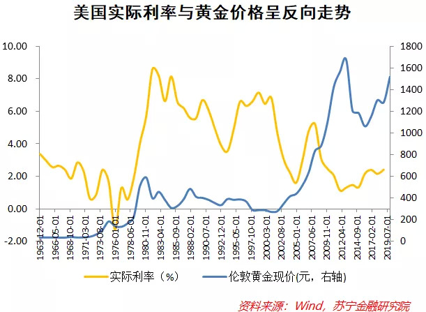 黄金与美元的竞争关系导致这两者的配置方向是相反的。持有美元的回报率降低,黄金的需求便会增加,黄金价格上涨。而持有美元的回报率相当于美国实际利率,它可用美国国债收益率减去通货膨胀率来衡量。因此,美国的通胀水平与其实际利率呈负向关系,进而与黄金价格呈现正向关系。