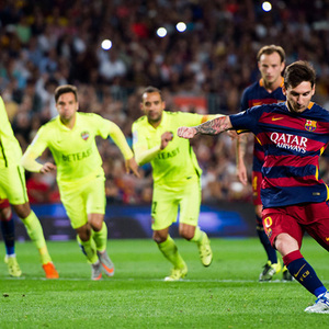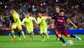 内马尔将比分扩大到2-0后不久,他又创造了点球。梅西在12码球线上罚出了一记与以往不同的点球——大力抽射,皮球像炮弹一样飞进球网。很明显,梅西这次罚球是寻求改变,他没有罚向惯常罚的球门右侧,这一次他成功了。不过,老天爷够狠,他想再次验证梅西的点球功力,于是75分钟他为自己创造了一个点球,结果他再次祭出大力抽射,只可惜皮球贴着横梁方向看台,梅西懊仰天一啸,有恼地也有无奈。