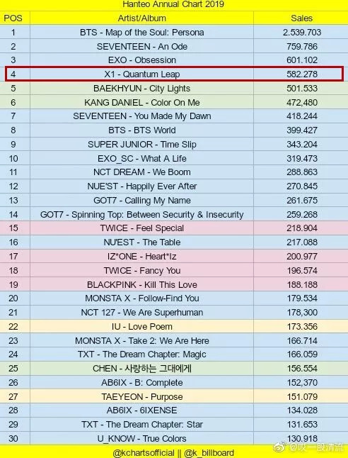 尽管关于限定团是否应该解散的争议已经持续数月,盖棺定论时仍引发了公众的惊讶。因为这支限定男团粉丝众多、成绩不菲,2019年仅凭借一张专辑就达成了64万张的不俗销量,位列韩国专辑销量年榜第五,年销量排在X1前面的只有防弹少年团、Seventeen、Twice和EXO。