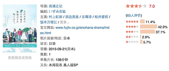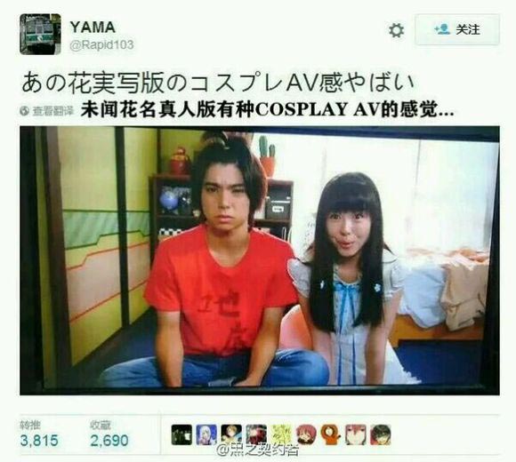千呼万唤的《未闻花名》真人版终于在本月21号开始放送,不过这次的放送只是113分钟左右的特别篇。先来放个PV吧: