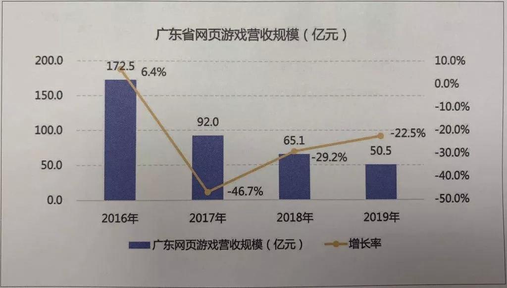 网页游戏行业营收则为50.5亿元,占全国网页游戏营收规模的45.8%,市场规模持续下滑。不过,目前广东省网页游戏营收占广东游戏营收规模的比例仅为2.7%,其对于游戏市场的影响不大。