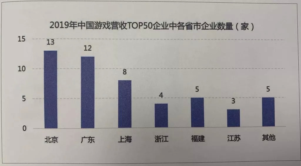 在营收方面,广东游戏企业的表现也稳中见长。2019年中国游戏营收TOP50企业中,广东省占据12家,位列第二,并且头部游戏企业质量较高。