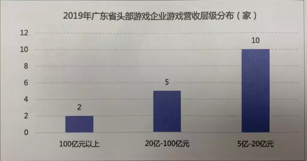 4.2019年广东省营收100亿以上游戏企业有2家,20亿-100亿有5家,5亿-20亿有10家,整体市场规模的扩张主要依赖于更多中部和尾部游戏企业的发力;
