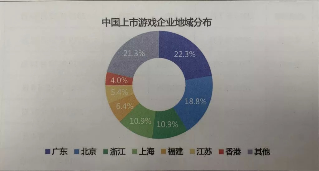 在资本市场方面,截至2019年统计日期,在202家中国上市游戏企业中,广东上市游戏企业有45家,占比达到22.3%,为全国第一。
