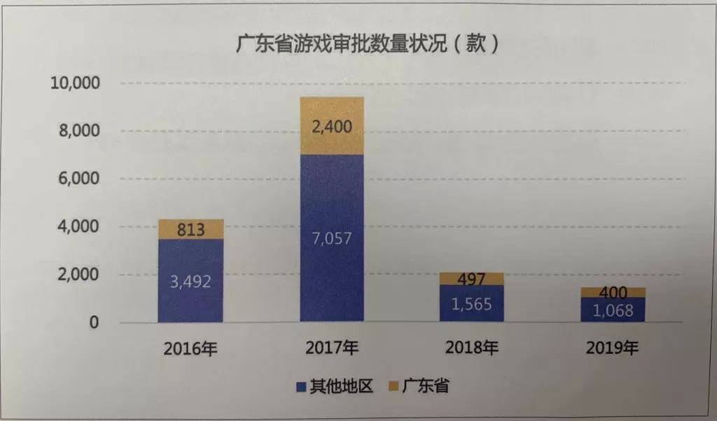 截至2019年统计日期,广东省游戏审批数量约为400款,约占全国游戏审批量的27.2%,整体数量略少于2018年。报告表示,这主要源于目前网络游戏仍然处于总量调控阶段,版号发放频率不高,但相应地也会促使游戏产品精品化的发展。