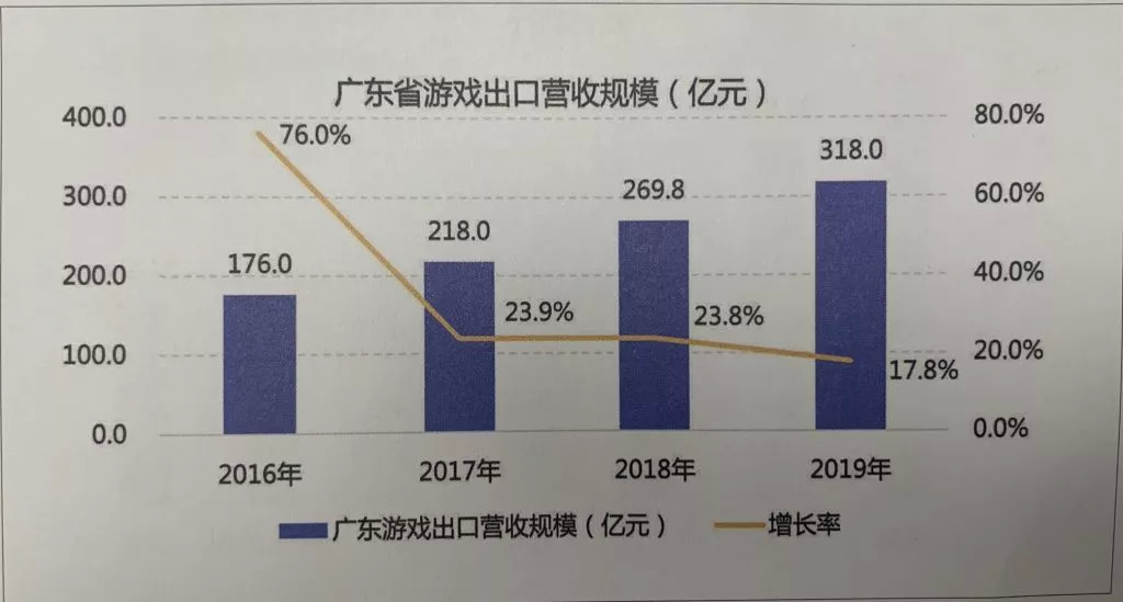 7.2019年广东游戏出口营收达318亿元,比2018年增长了48.2亿元,同比增长17.8%多个细分类型占比超过5%;