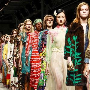 继6月4日发布度假系列后,米兰时装周的2016年春夏发布会是Gucci新任创意总监Alessandro Michele出任以来的第三次成衣秀。在印有蛇形图案的长毯上,从头到脚武装完毕的模特们走完了一场浓烈的复古大秀,整个系列鲜明的风格和色彩被Vogue评价为“非常的意大利”。
