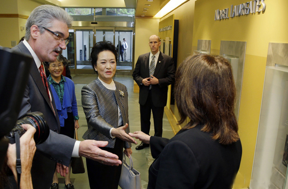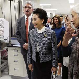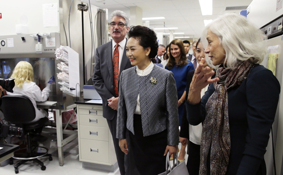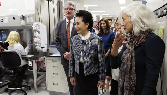 1. 彭丽媛在西雅图参观福瑞德-哈金森癌症研究中心。