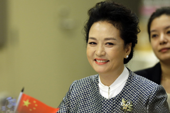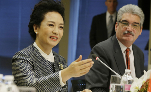 5. 彭丽媛与中美科研专家进行交流。