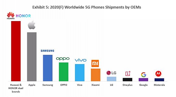 主要看看国内其他几家,荣耀的主要对手则是 OV,份额估计在 5%左右,算不上太大,但也不是很小,荣耀最大的底气在于和华为共享的 5G 技术,从研发到产品力再到市场占有率,可能在今年会迎来一个集中收获期,市场也普遍预测中国会有 1亿—1.5 亿 5G 出货量,暂列二三位的 OV 如何抵御这波攻势,以及各家如何清 4G 的库存,是个看点。
