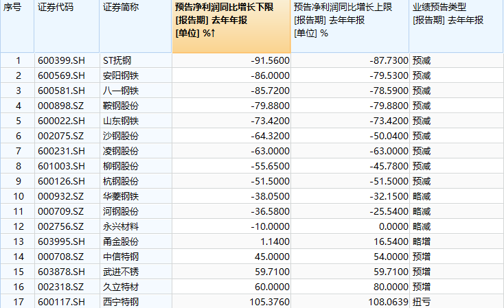 截至1月22日,A股共有34家钢铁公司上市公司,17家钢铁公司发布了2019年业绩预告,12家出现了业绩下降。其中,知名钢铁公司鞍山钢铁预计2019年度业绩同比降低约79.88%。对于业绩下滑,鞍山钢铁称,铁矿石、煤炭价格同比上涨明显,购销两端双重挤压,钢企利润空间收窄,利润水平同比下滑。