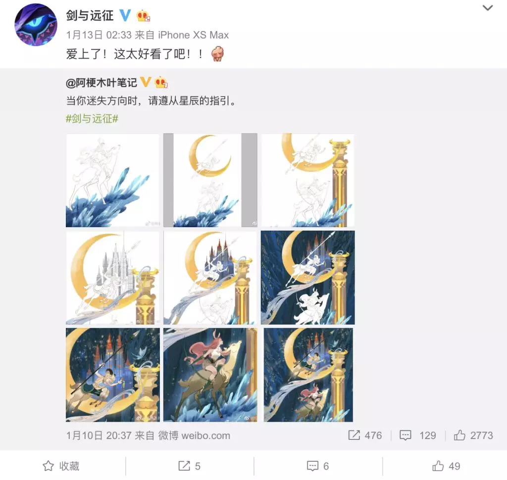 值得一提的是,早在国服上线前,莉莉丝就和许多同人大触展开了合作,让大触们为《剑与远征》创作高质量内容。直至目前,官博上基本每天都会有新的同人发布。这对于游戏美术的口碑塑造有一定效果。