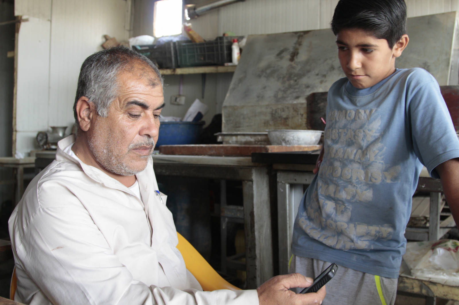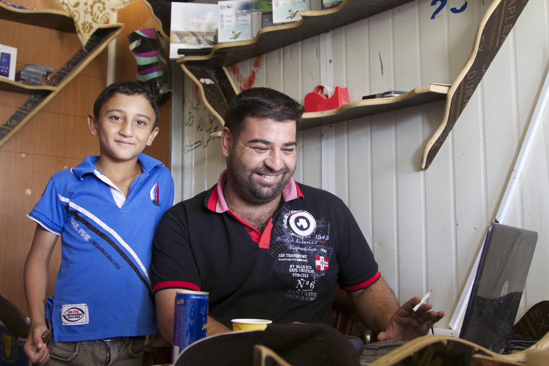 哈提母∙马萨马今年32岁,是三个孩子的父亲,两年多前开了一家小店。他最开始逃到约旦,住在马夫拉克镇附近。出于难民身份,他不能在那里工作,于是举家搬到扎阿塔利难民营。