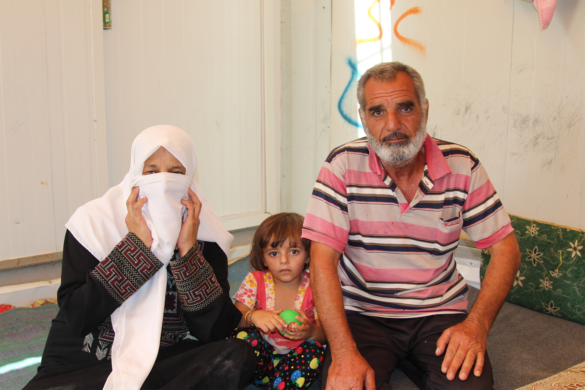 “一天日落前,我们一起坐在我们在德拉的房子里,一枚导弹落在房子附近。这件事发生后,我们决定离开。”阿布坐在妻子和年幼的孙女鲁拉身边说道。