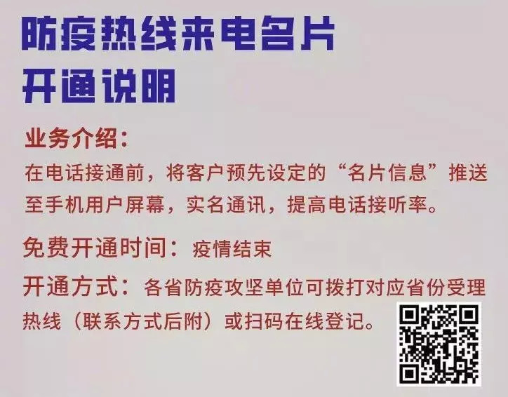 中国电信免费为各地防疫热线提供来电名片服务,保证关键时期的电话第一时间快速接通。