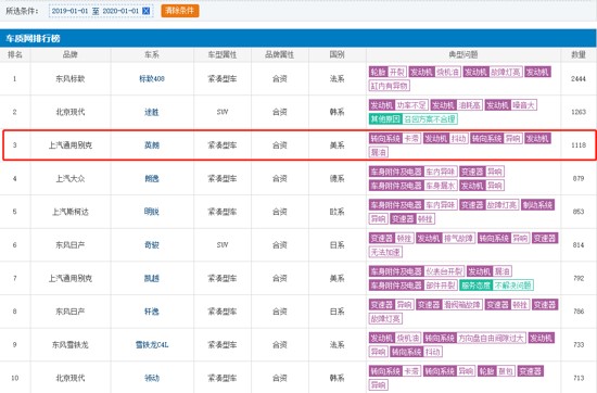 近日,GPLP犀牛财经从车质网查询得知,2019年期间别克英朗的投诉量高达1118条,位居投诉排行榜的第三名。其中被投诉最多的方面,分别为转向系统卡滞、发动机抖动、转向系统正常、发动机漏油等。
