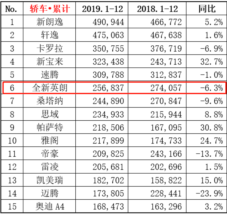 但可惜的是,由于车市萧条、国五切国六等外在原因,英朗的销量也没有起色,在2019年虽累计售出25.68万辆,但相对2018年销量下滑6.30%。