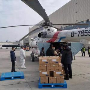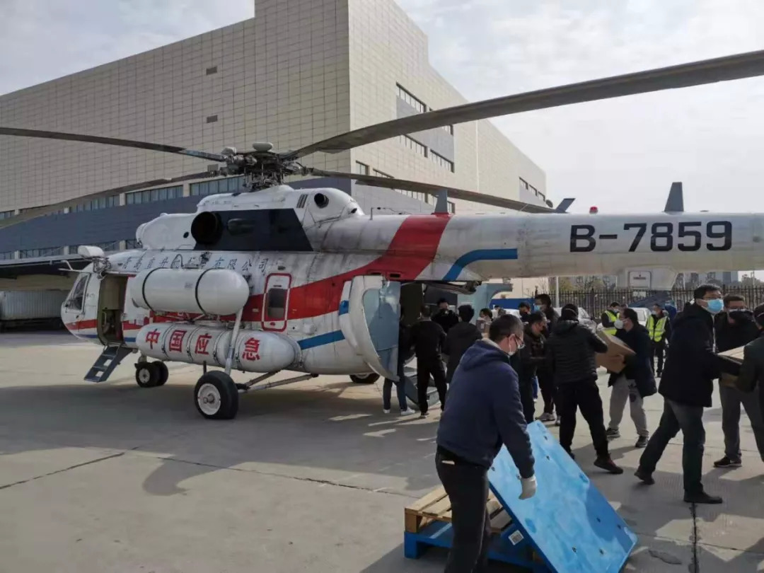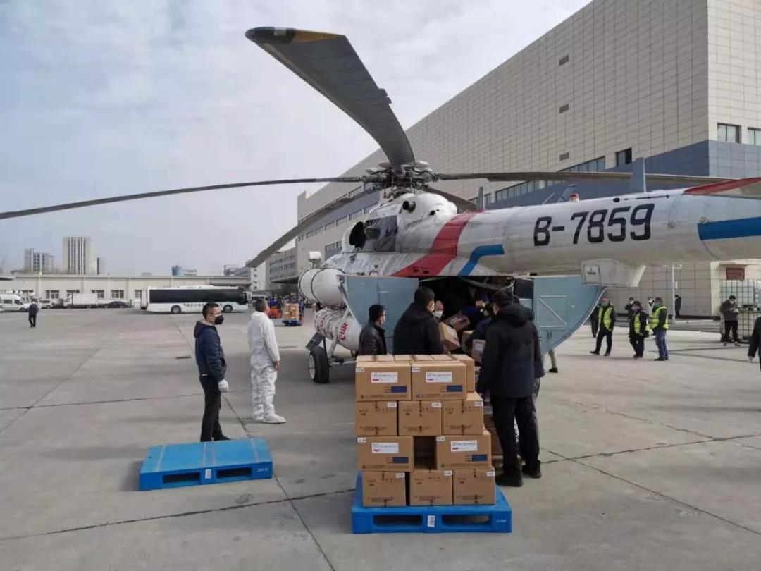 2月1日下午1点半,一架直升机缓缓降落到武汉光谷七路国药控股湖北物流中心,装载一批防疫急需物资后随即起飞,奔赴宜昌。这也是湖北省在此次疫情防控工作中,首次采取空运的方式运输防疫物资。