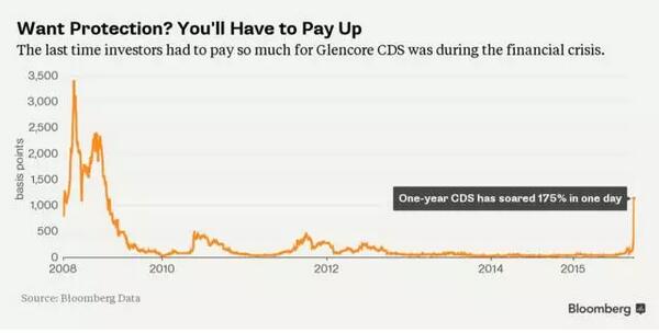 本轮的抛售非常激烈。相较于嘉能可五年内违约,投资者对嘉能可明年违约要求更多的保护——这一债市扭曲的现象往往意味着企业陷入了困境。