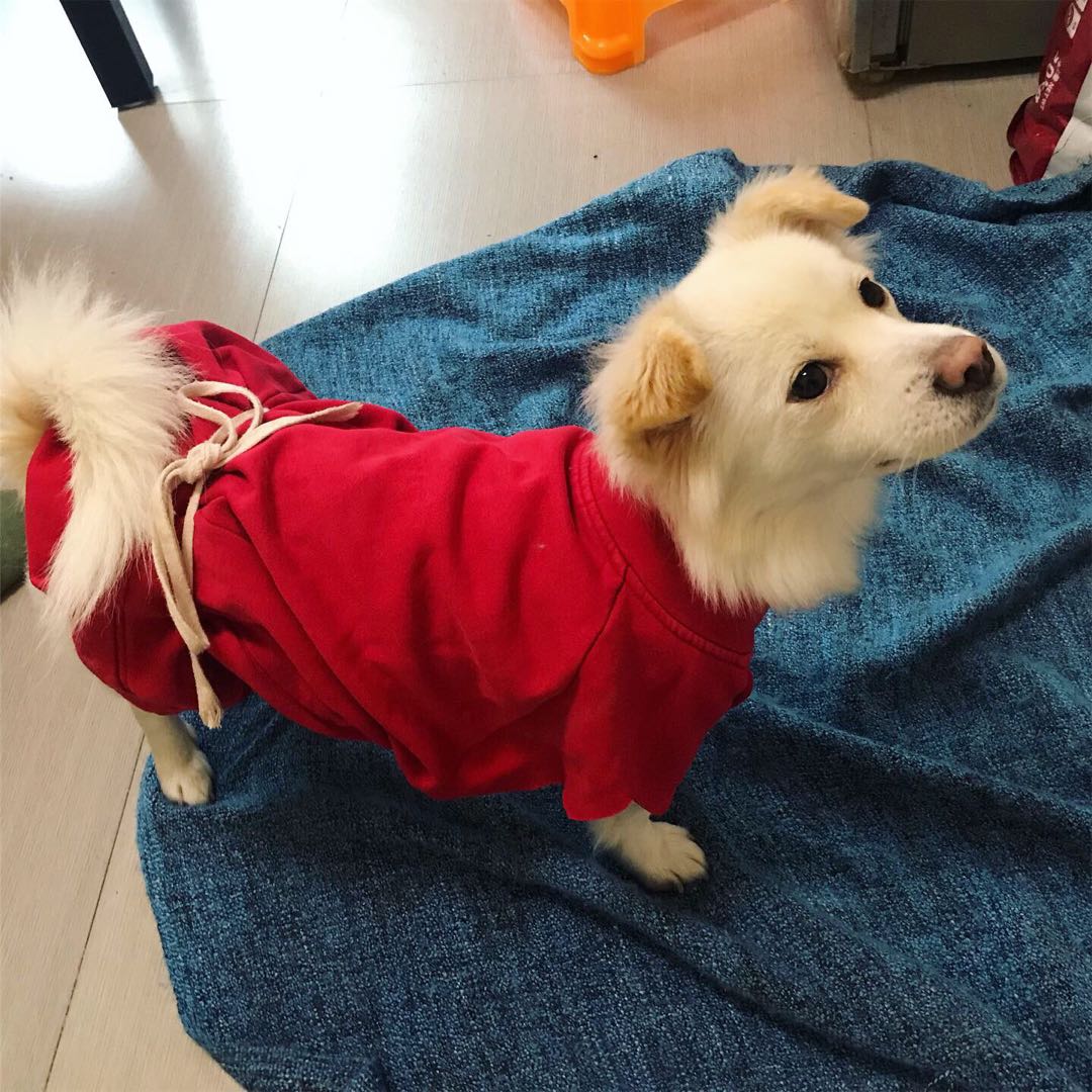 要知道,当代父母的乐趣是培养自己孩子当童模,那么当代独居宠物主人的乐趣就是培养狗子当狗模。在这个先行理念的指引下,我整理出家中的废旧衣物,就着家中两狗子的身形,开始衣物大改造行动。