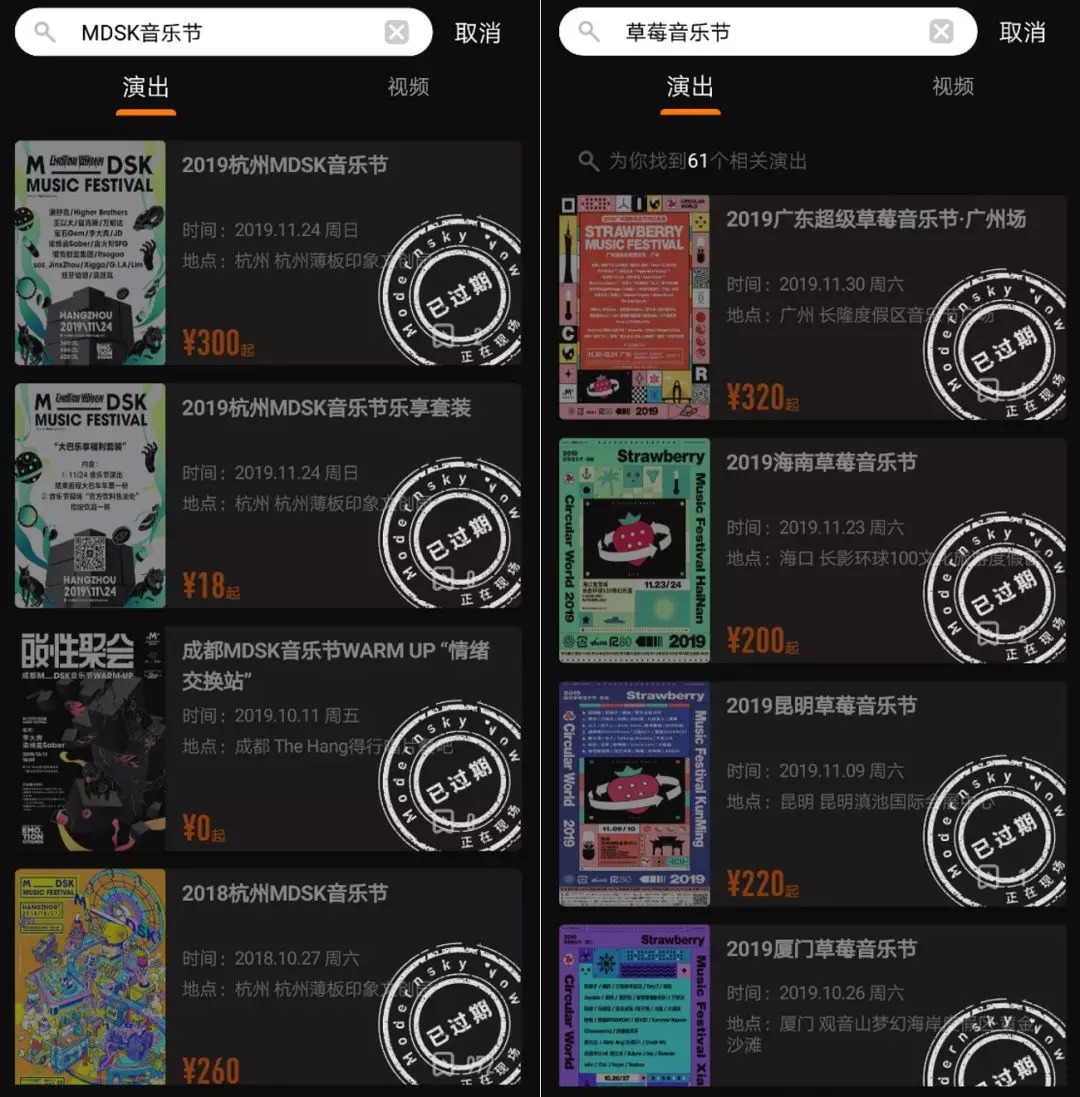 2019年11月,摩登天空曾在发布会上宣布,将在2020年落地50场音乐节。目前来看,这个计划恐怕很难完成。摩登天空旗下的“正在现场”平台显示,目前草莓音乐节、MDSK音乐节的售票信息都止于去年11月底左右。