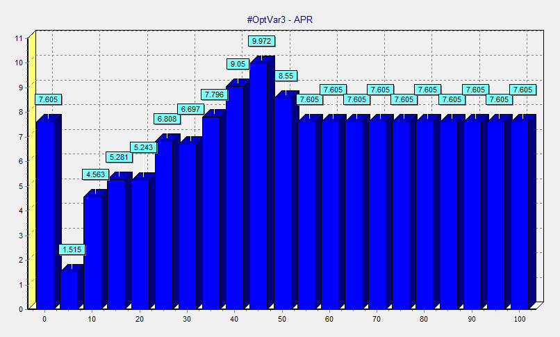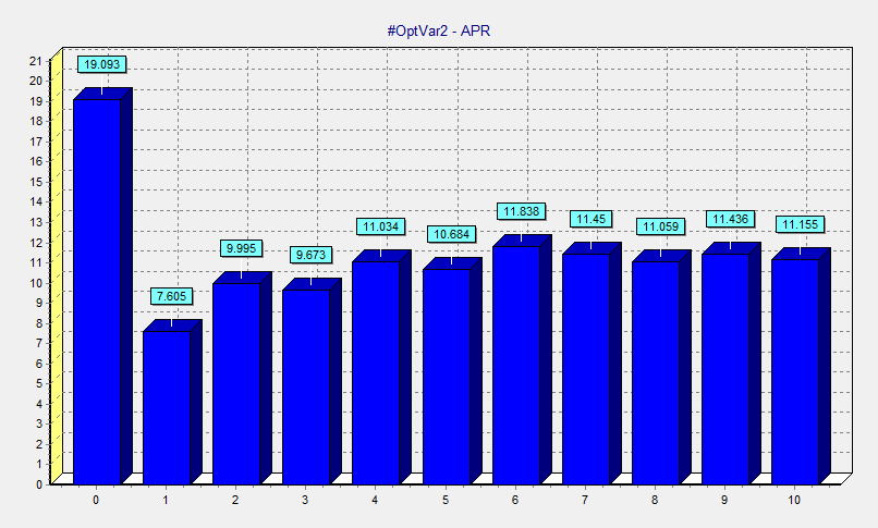 图中横轴表示不同的止损位,数值1表示当亏损达到1%的时候进行止损,卖出离场,10代表亏损达到10%时止损,而0代表不进行止损操作;