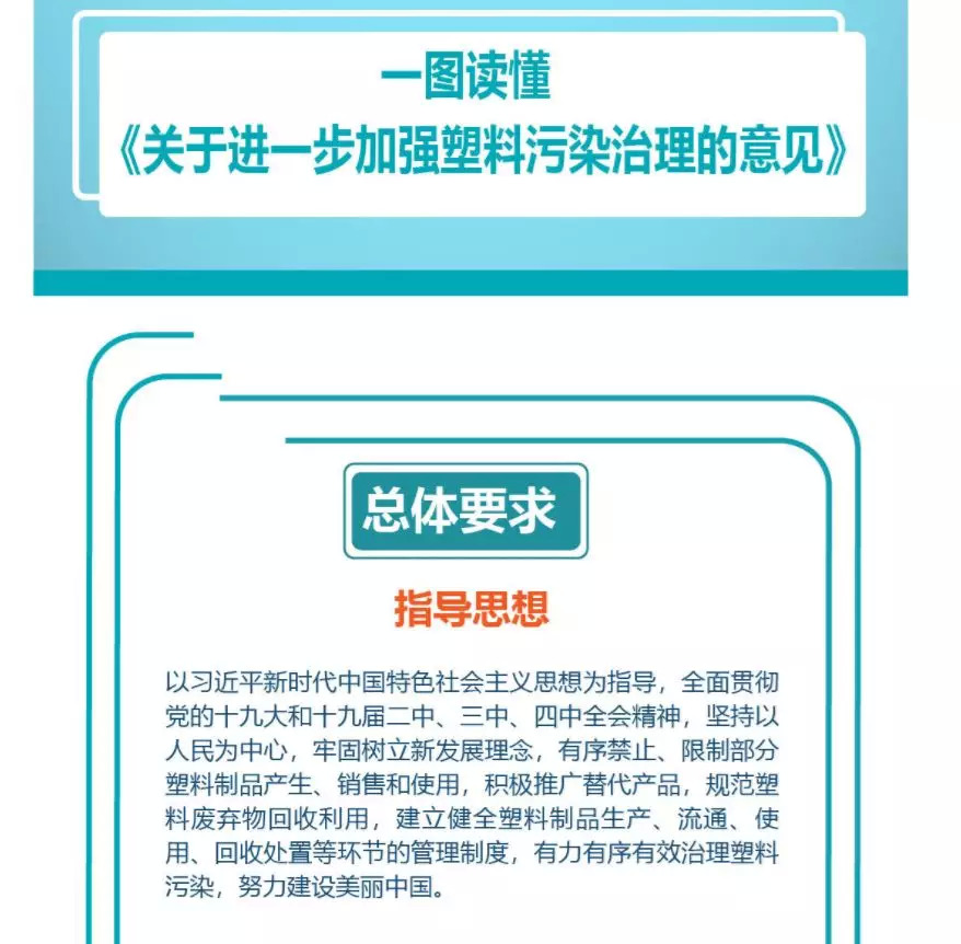 《意见》显示,其治理塑料污染的主要目标是:“到2020年,率先在部分地区、部分领域禁止、限制部分塑料制品的生产、销售和使用。到2022年,一次性塑料制品消费量明显减少,替代产品得到推广,塑料废弃物资源化能源化利用比例大幅提升;在塑料污染问题突出领域和电商、快递、外卖等新兴领域,形成一批可复制、可推广的塑料减量和绿色物流模式。到2025年,塑料制品生产、流通、消费和回收处置等环节的管理制度基本建立,多元共治体系基本形成,替代产品开发应用水平进一步提升,重点城市塑料垃圾填埋量大幅降低,塑料污染得到有效控制。”