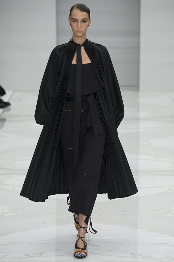自从2013年担任TOD'S创意总监以来,设计师Alessandra Facchinetti似乎一直在为这个意大利老牌找寻求新的商业卖点。在这个系列里,模特们普遍加配的“双T”手袋,也许有机会帮助他完成心愿。