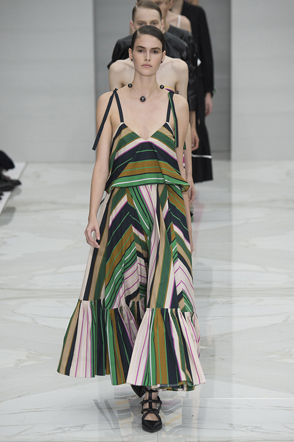Salvatore Ferragamo 2016春夏系列由创意总监Massimiliano Giornetti操刀,整个系列没有图案、刺绣、抑或贴花,而是由棉质吊带裙传递出简单的理念。