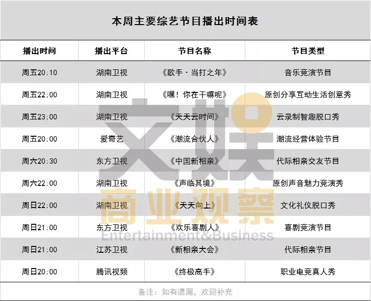 通过本周综艺节目播出时间表不难看出,在全员防控疫情的大环境下,从电视台到视频网站的综艺节目在数量上都出现了大幅度缩水。
