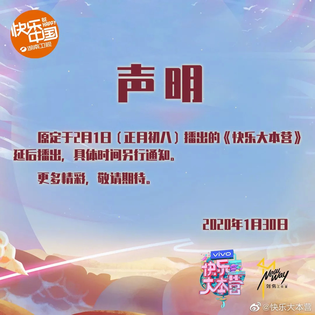 其中主要包括湖南卫视《快乐大本营》已停播3期,原本播出了两期的《我家那闺女2》也宣布暂停播出;浙江卫视在播综艺《漫游记》《新声请指教》也一直延期播出;本周北京卫视的《了不起的长城》也加入了停播队伍。