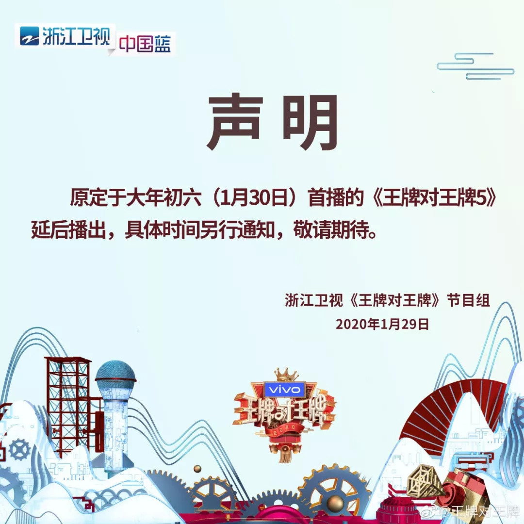 与在播综艺一样,受影响的还有原本计划开播的接档节目。浙江卫视的两大接档节目《王牌对王牌5》和《天赐的声音》在疫情影响下,都暂时失去了音讯。
