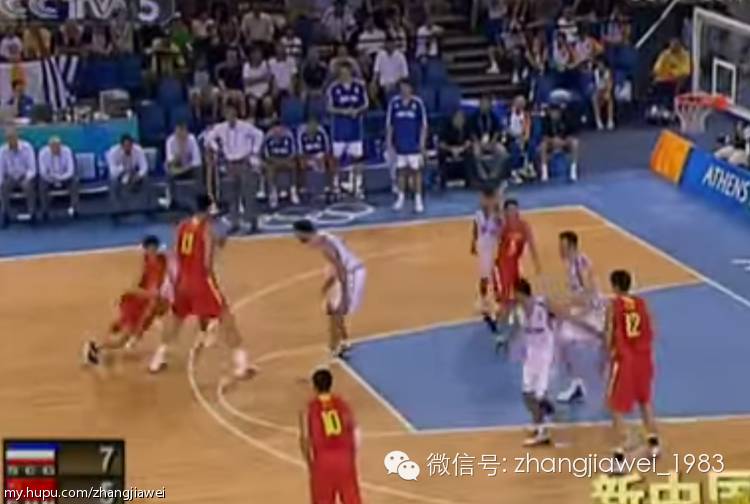 中国队的应对?上线转移,丁彦雨航一个空位三分球得手——破联防嘛,就是投三分。
