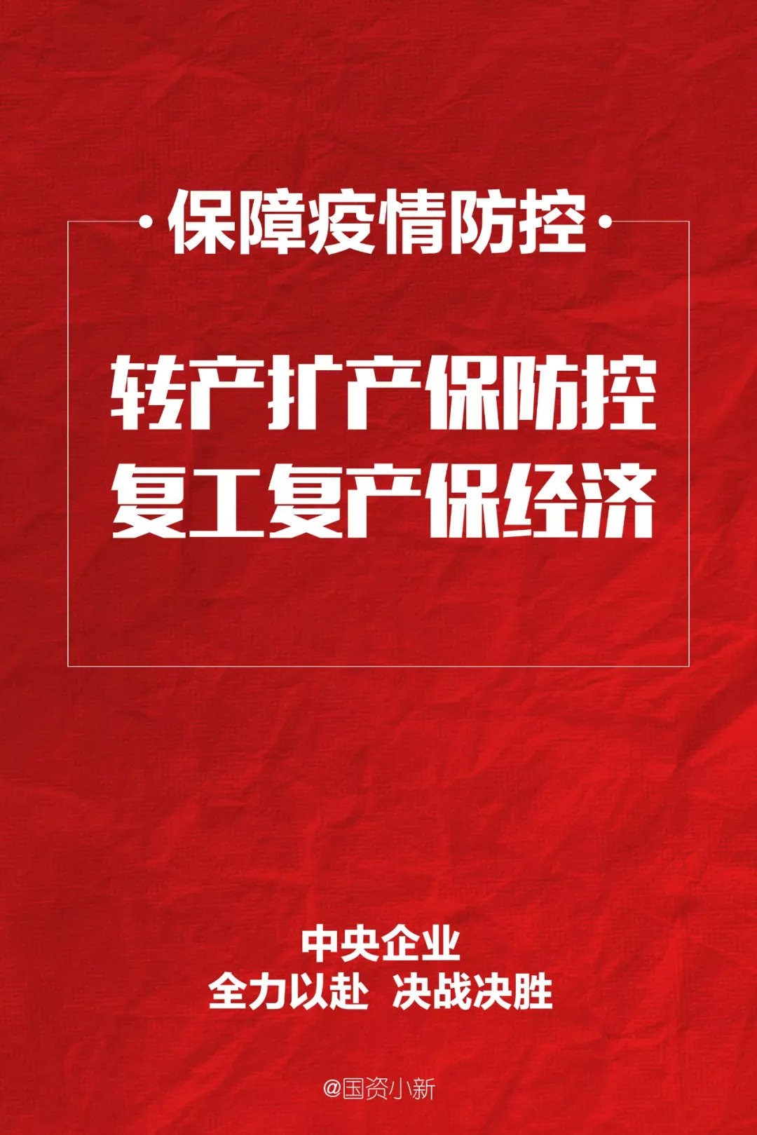 国资委党委召开的中央企业加强疫情防控工作视频会议强调,在全力以赴做好防控工作的同时,按照企业所在地党委、政府的安排积极复工复产,努力把疫情带来的不利影响降到最低,全力以赴保持中央企业生产经营稳定运行,为做好“六稳”工作贡献力量。