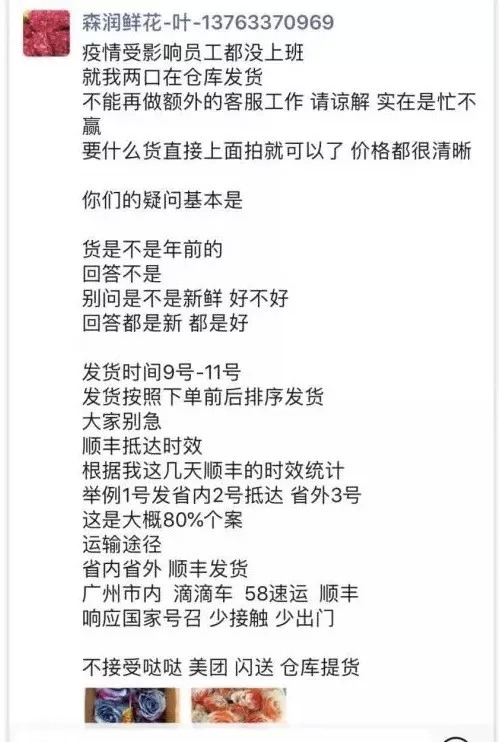 森润鲜花老板的朋友圈截图