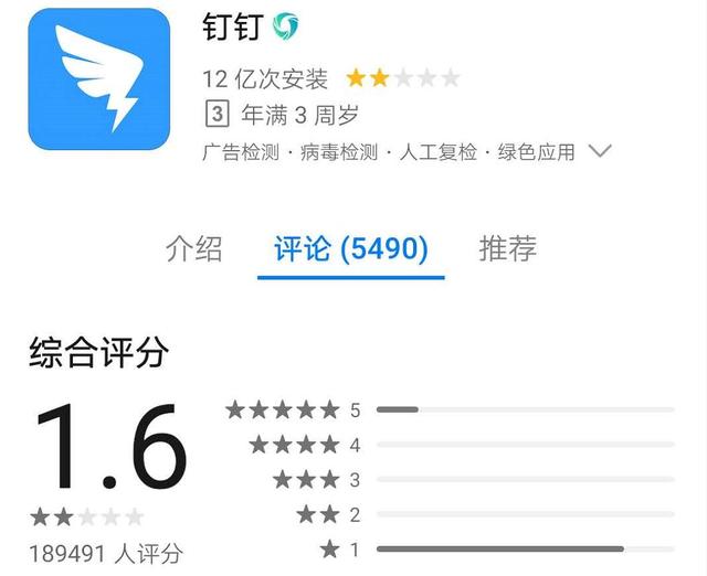 总之,钉钉被骂惨了,评分一路下滑。