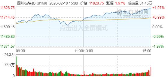 四川板块早盘分时出现跳水,午后盘中以震荡拉升为主,尾盘飘红。共计96只个股上涨,天奥电子、华体科技、英杰电气、天邑股份、海特高新、金时科技及航发科技七股涨停,整体涨幅达到1.97%。
