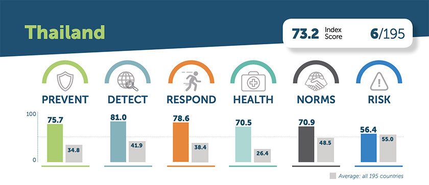 GHS Index评估方也在报告中点名表扬了泰国是“模范”,是中等收入国家中唯一跻身综合得分前列的国家。