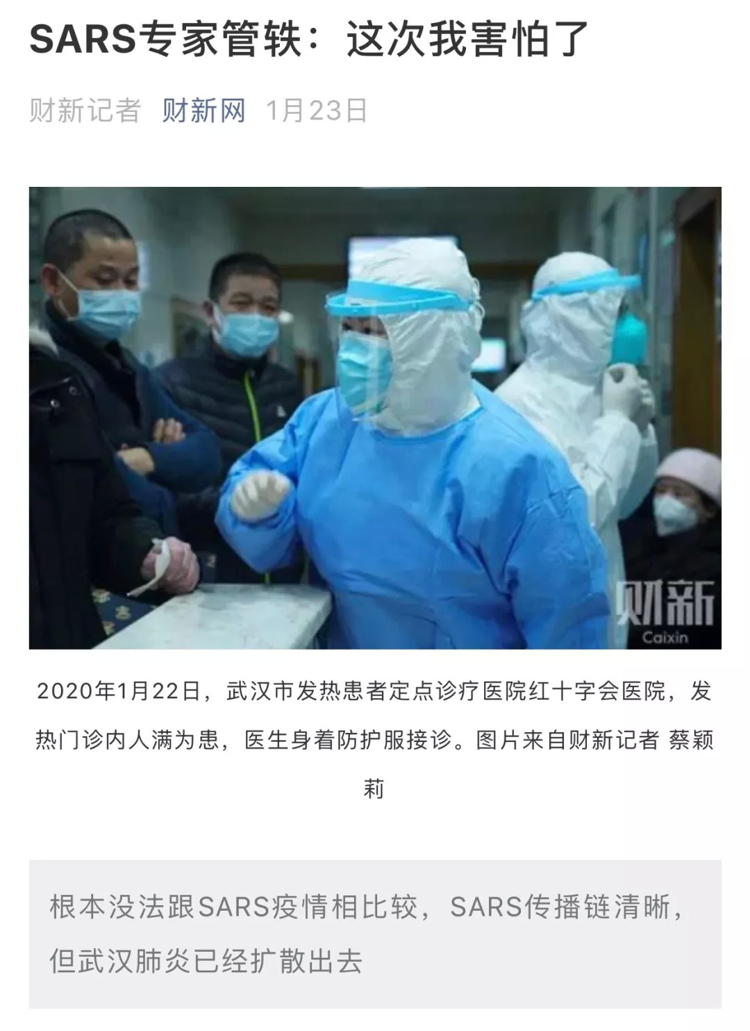 最后来说说管轶。很多人知道管轶是从1月23日财新网的一篇题为“SARS专家管轶:这次我害怕了”的报道开始的。