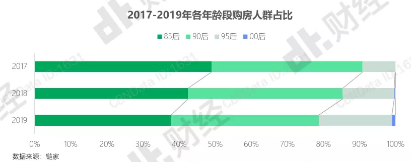 ▲2019年主要城市购房者中,95后占比较2017年提升了11个百分比