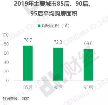 ▲2019年,成都85后平均购房面积约79㎡,90后平均购房面积约74㎡,95后平均购房面积约71㎡。略高于主要城市的平均购房面积。
